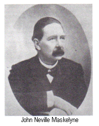The man responsible for this change was Cheltenham-born John Maskelyne. As was Robert-Houdin, Maskelyne had been apprenticed to the craft of watchmaking, and he, too, had a great interest in conjuring. During a visit to a performance held in Cheltenham Town Hall, of the Davenport Brothers who professed to be producers of spiritualistic phenomena, Maskelyne probed part of their secret and he stood up at the conclusion of the performer and loudly announced that not only were the Davenport Brothers frauds, but further that within a month he would, in the same hall, duplicate, using natural means, the experiments that had been witnessed that afternoon.